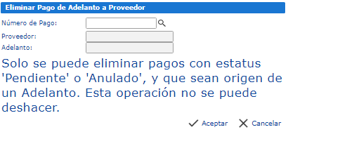 Nota: El Adelanto de Pago debe tener un Estatus Pendiente, para que pueda ser Anulado