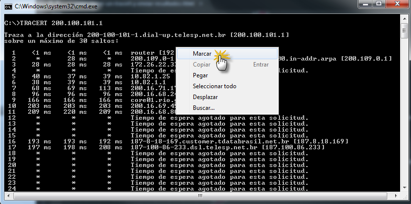 el comando TRACERT seguido del dominio o IP a diagnosticar y pulse Enter. La sintaxis es la siguientes: