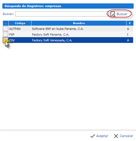tal caso que no sepamos el código de la empresa presionaremos el botón