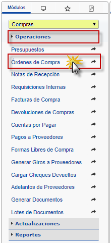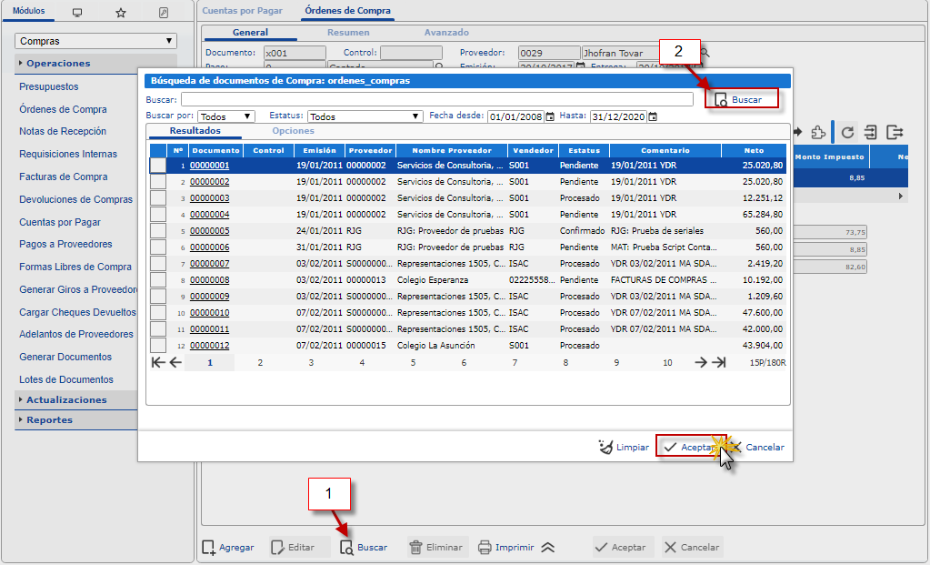 actualice una lista completa con todas las ordenes de compras creada, seleccionaremos la deseada y presionaremos