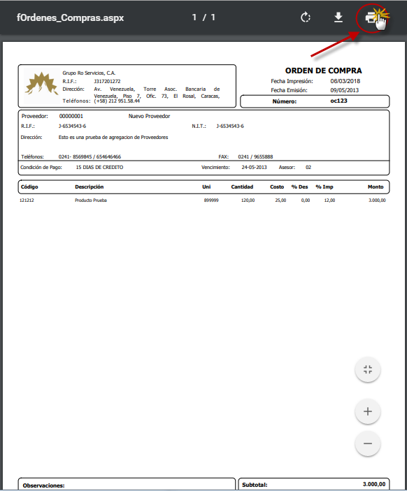 Te explicamos detalladamente como imprimir un formato de orden de compra a un proveedor en el módulo de compras en eFactory.