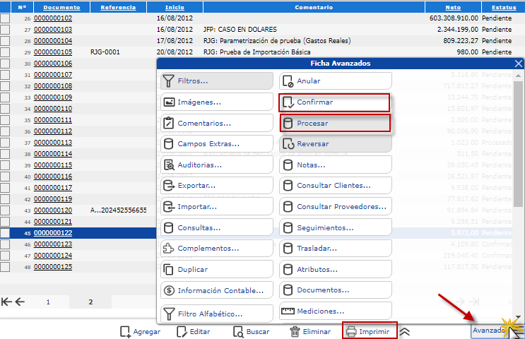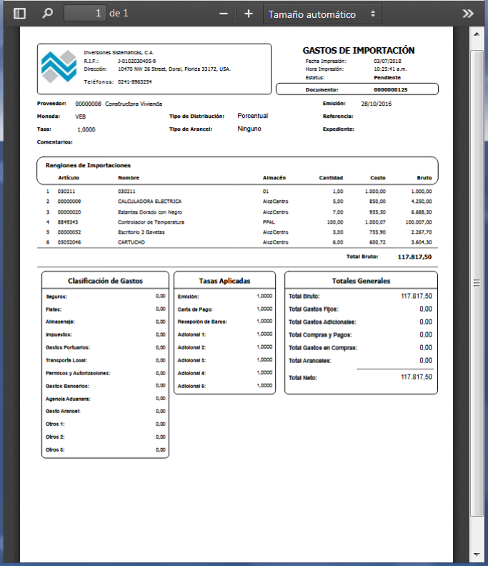 , donde localizaremos cada uno de los documentos que representan la adquisición de artículos importados: Órdenes de Compra, Notas de Recepción y Facturas de Compras.
