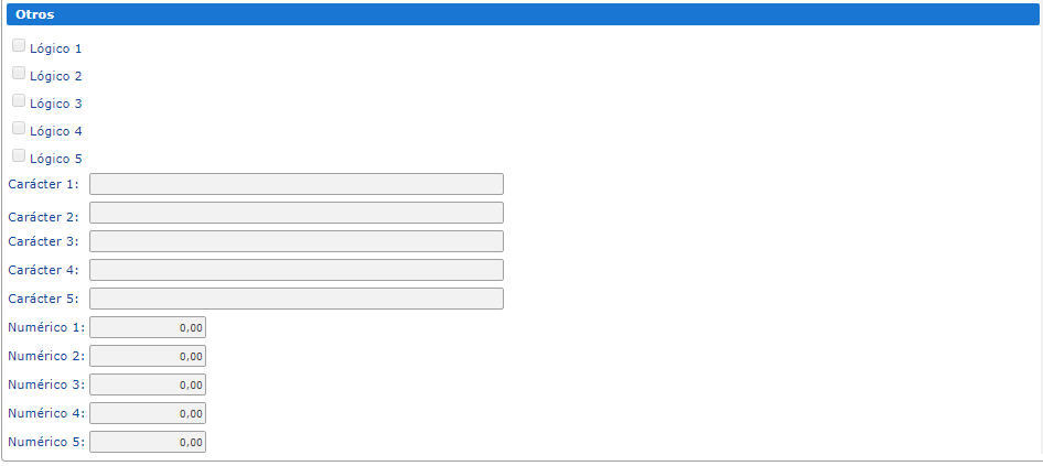 Esta sección se provee para expandir las opciones del registro de la falla, a través de campos lógicos, campos de carácteres y campos numéricos, en estos podremos ingresar el valor que creamos necesario para completar la definición de la falla. Cabe destacar que esta no es la única opción provista para ampliar la información, desde la ficha Avanzados podremos extender aún más los campos a cargar utilizando Propiedades