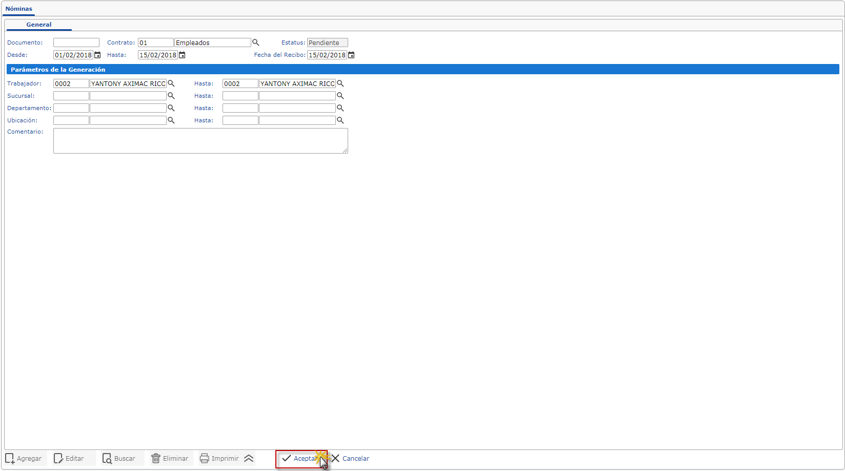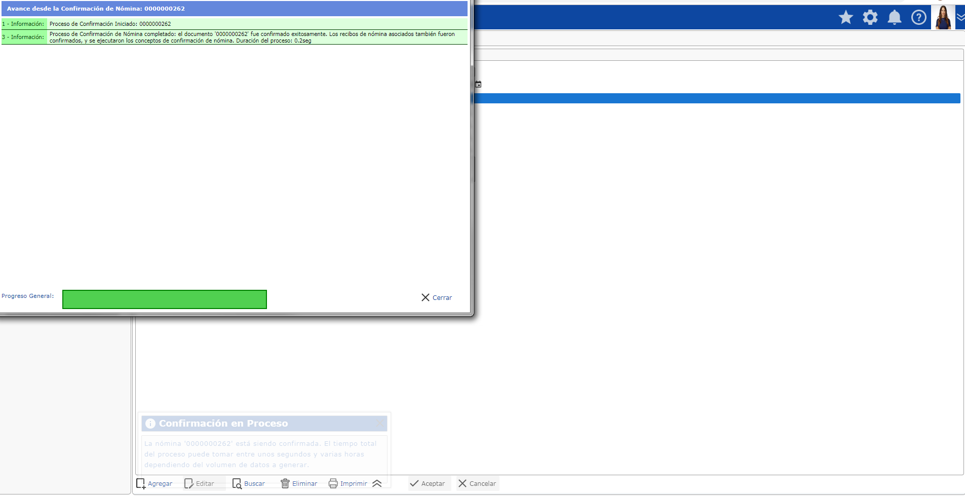 Nota: seleccionaremos aceptar y confirmamos las nóminas en la ficha de avanzados botón