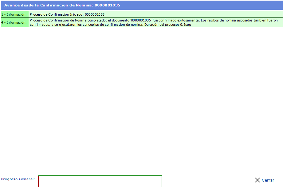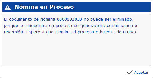 aparecerá un mensaje en pantalla indicando el número del Documento de Nómina que está siendo generado.