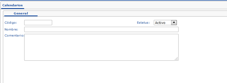 Los calendarios son definidos en el Módulo de Nómina en la sección Actualizaciones en la Opción Calendarios, donde debe ingresar y si no tiene calendarios predefinidos puede agregar uno presionando el botón Agregar, permitiendo colocarle un Código, Nombre, algún comentario adicional y el Estatus del calendario que debe ser Activo