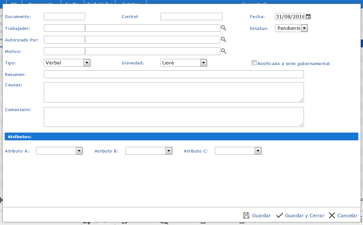 Agregar amonestaciones Para esto sólo debes dar clic en el botón Agregar, donde aparecerá un formulario que contiene los siguientes campos: