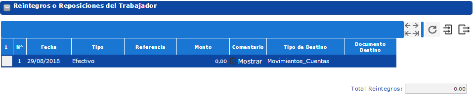 La sección de Reintegros o Reposiciones del Trabajador se divide en diferentes renglones, que contienen los siguientes campos:
