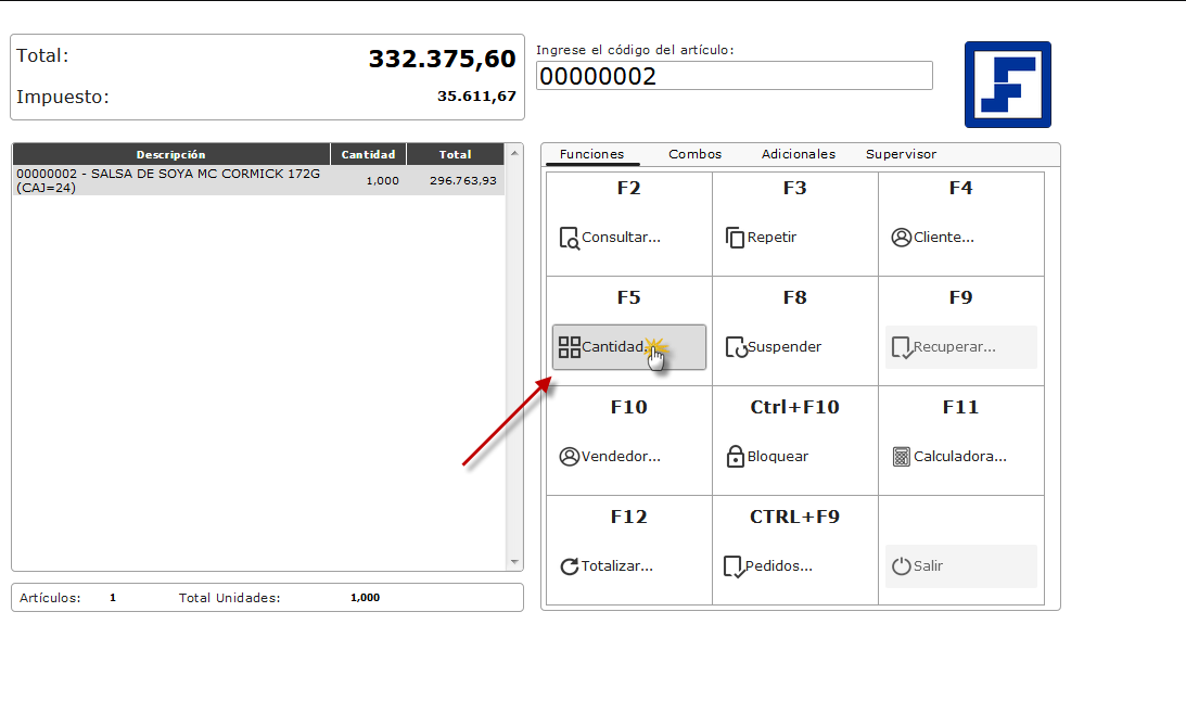 a. Luego se los desplegara un pequeño cuadro, en el deberemos colocar la cantidad del articulo que queramos y para finalizar presionaremos