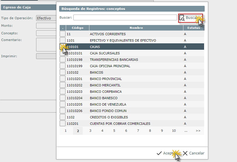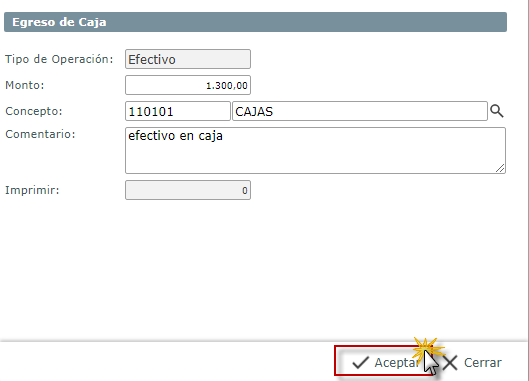 Nota: El Egresos de la caja es para que al empezar el día el cajero recibe el ingreso de una caja con una cantidad de dinero en efectivo para el cambio necesario que pueda necesitar en el día,