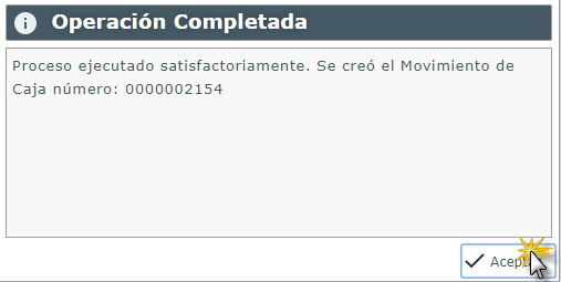 c. Después de realizar el Egresos de Caja se nos muestra una ventana donde nos informa que el proceso esta completado sastifactoriamente.