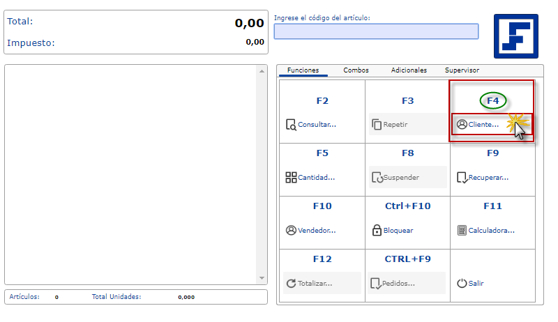 b. Luego se muestra la pantalla del sistema, donde seleccionamos F4 o podemos también presionar el botón