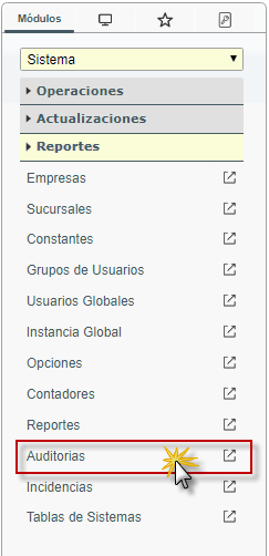 b. En el módulo Sistema, desplegamos el componente Reportes y activamos el sub componente Auditorias.