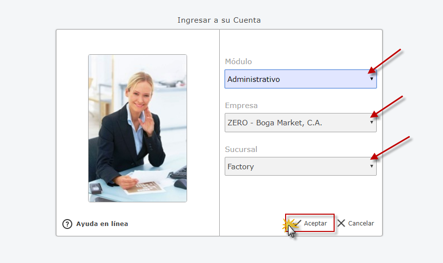 Administrativo Empresa y Sucursal de la Empresa y presionamos el botón