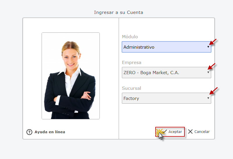 Administrativo Empresa y Sucursal de la Empresa y presionamos el botón