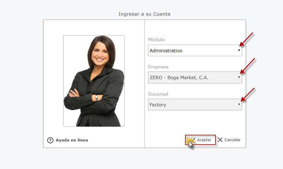 Administrativo Empresa y Sucursal de la Empresa y presionamos el botón