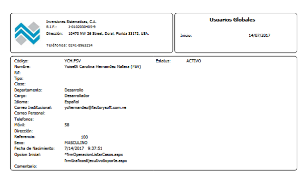 , ubicado en la parte inferior de la ficha asociada al usuario, en el formulario emergente, seleccione el formato de su preferencia e imprima.