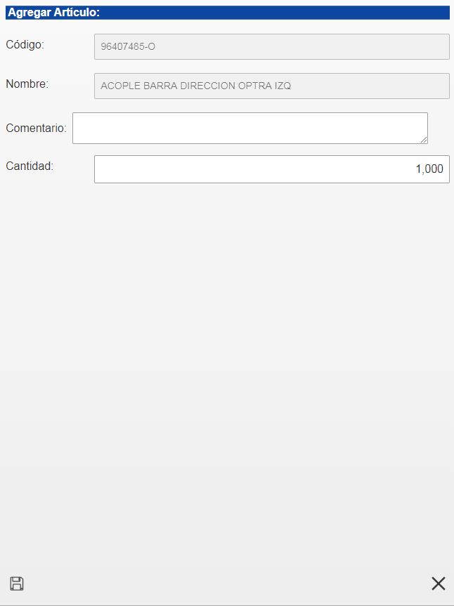 Luego se le mostrara una nueva ventana en la cual podrá agregar la cantidad de articulos que