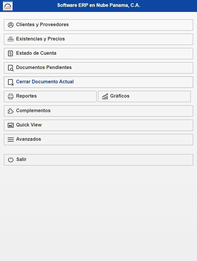 Seguidamente debe regresar a la pantalla de inicio y seleccionar la opción Cerrar Documento Actual