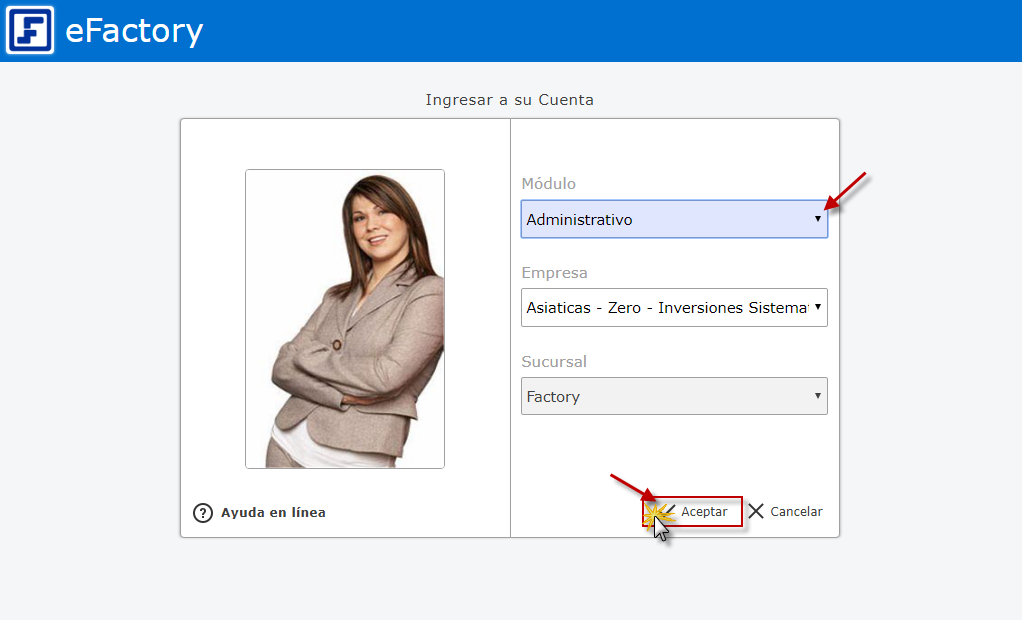 a. Para iniciar en eFactory tenemos que ingresar con nuestro Usuario y Contraseña y seleccionar el botón