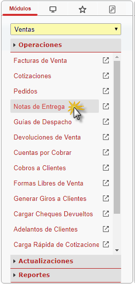 b. En el módulo Ventas, desplegamos el componente Operaciones y activamos el sub componente Notas de Entrega