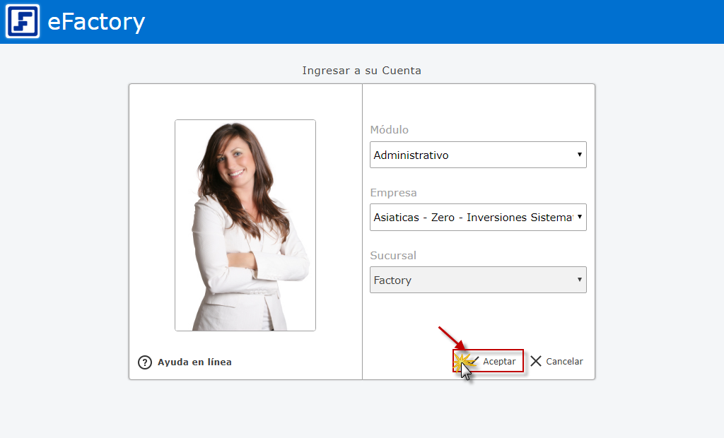 a. Para iniciar en eFactory tenemos que ingresar con nuestro Usuario y Contraseña y seleccionar el botón