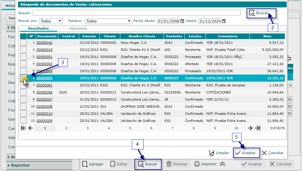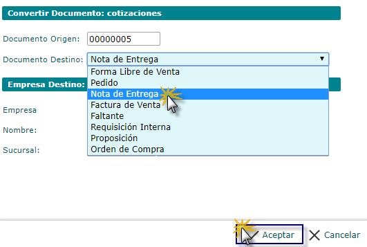 y buscaremos la cotización para convertirla en una nota de entrega.
