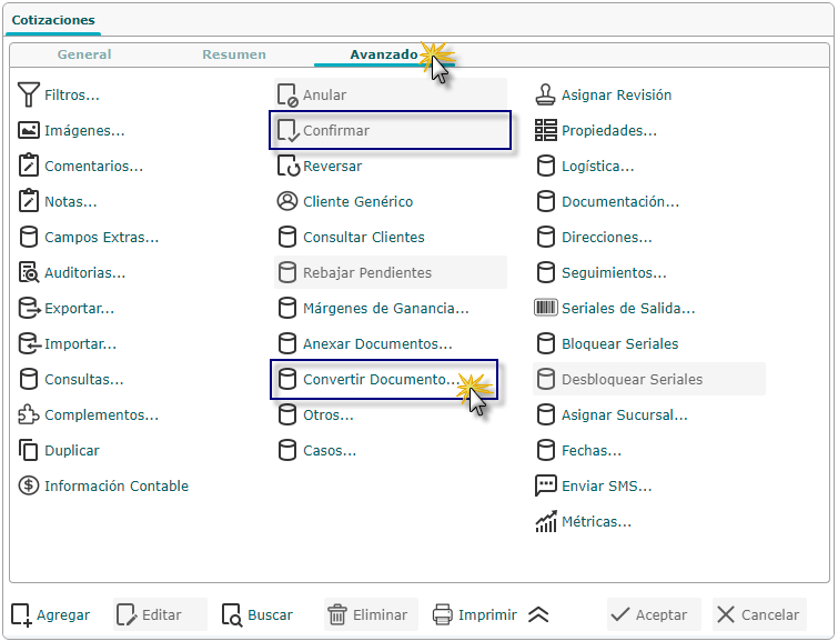 a. Para convertir una cotización se debe seleccionar el botón