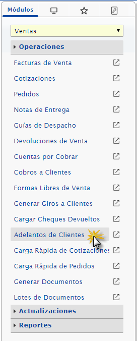 Te explicamos detalladamente cómo crear o registrar un Adelanto a Clientes en en Módulo de Ventas de eFactory ERP.