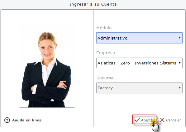 Administrativo Empresa y Sucursal de la Empresa y presionamos el botón