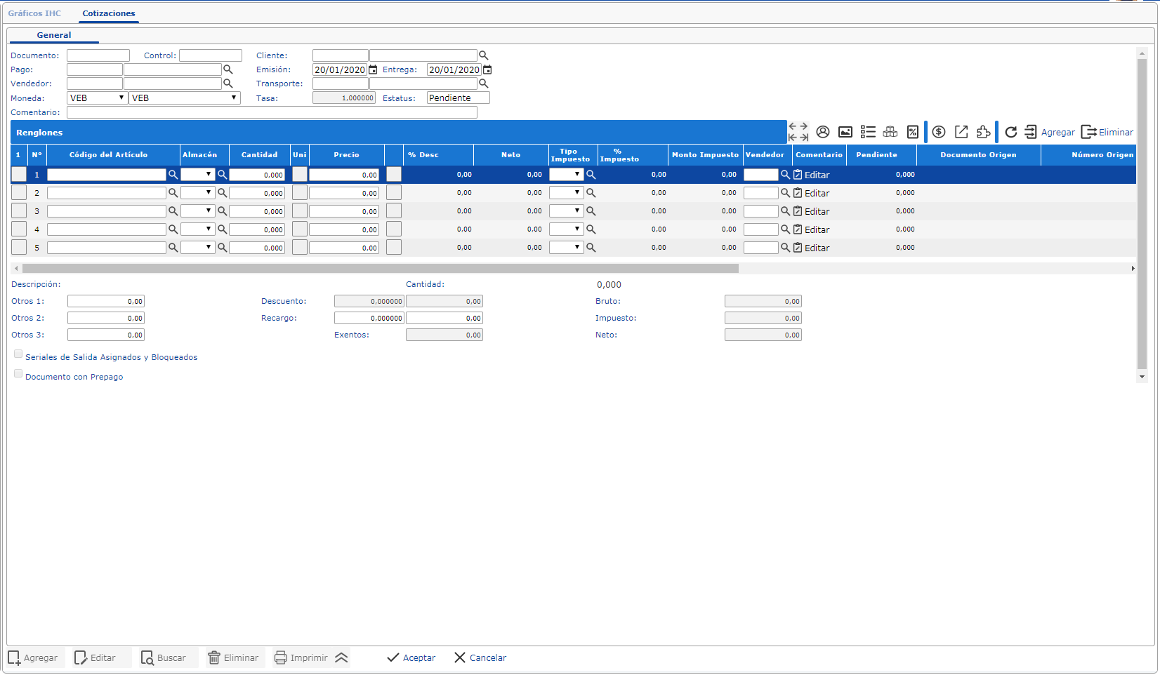 Allí te aparecerá una Pantalla en donde debes dar clic en el botón Agregar para crear la cotización.