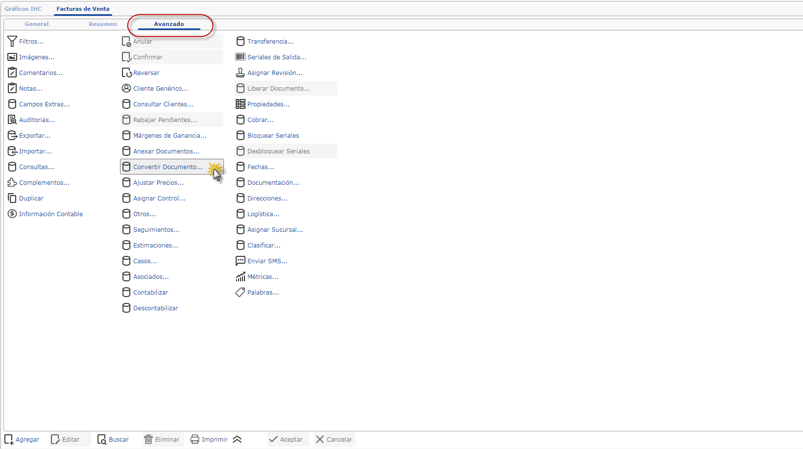 Estando allí puedes seleccionar alguna factura que hayas realizado con anterioridad, haciendo uso del botón