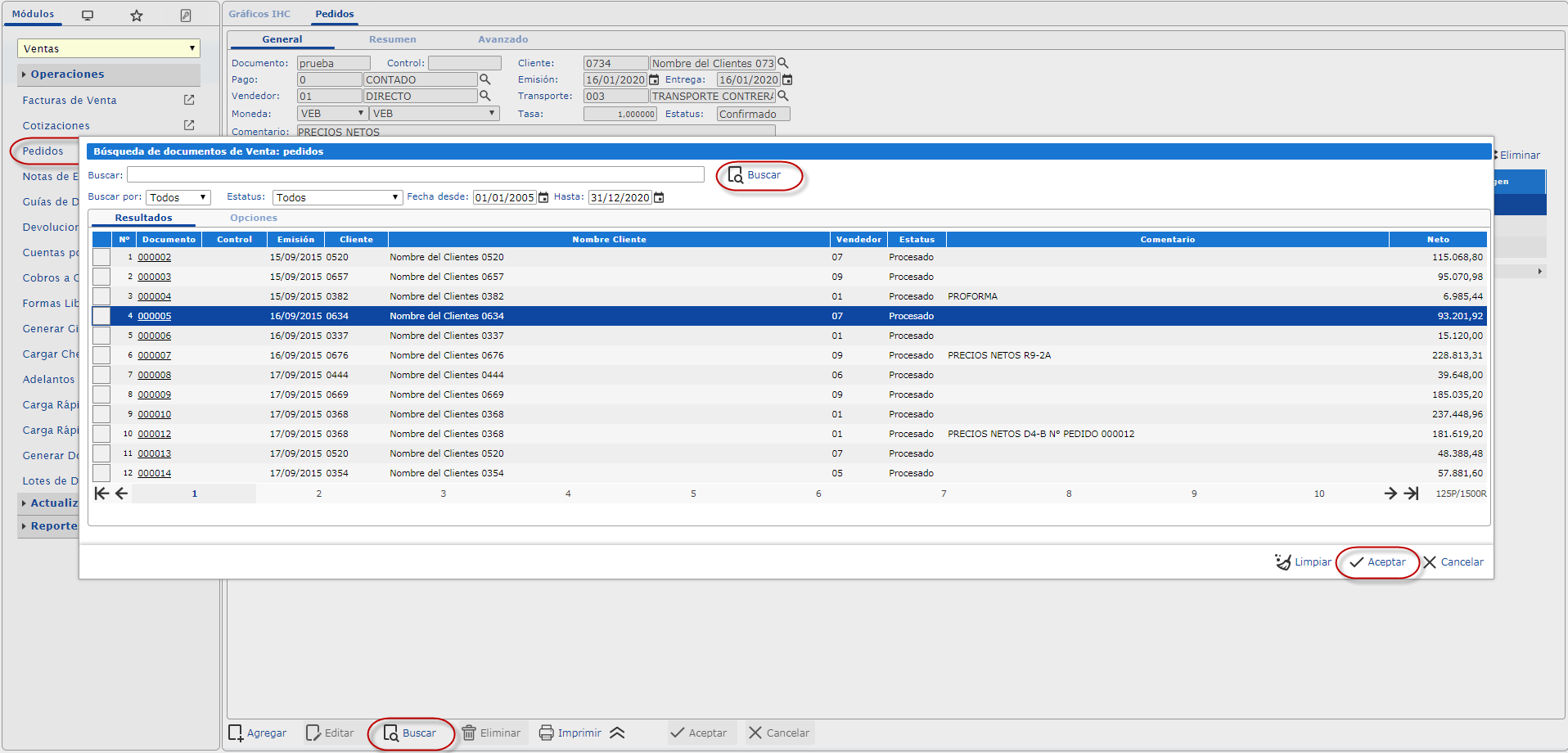 Para esto sólo debes ingresar en el módulo de Ventas y en la pestaña de Operaciones selecciona Pedidos.