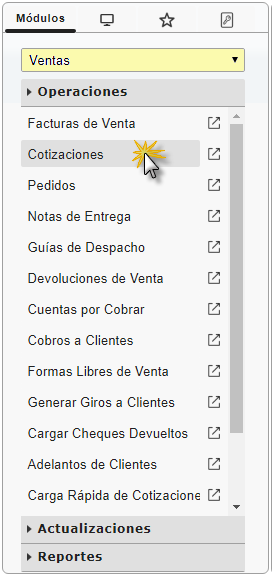 b. En el módulo Ventas, desplegamos el componente Operaciones y activamos el sub componente Cotizaciones