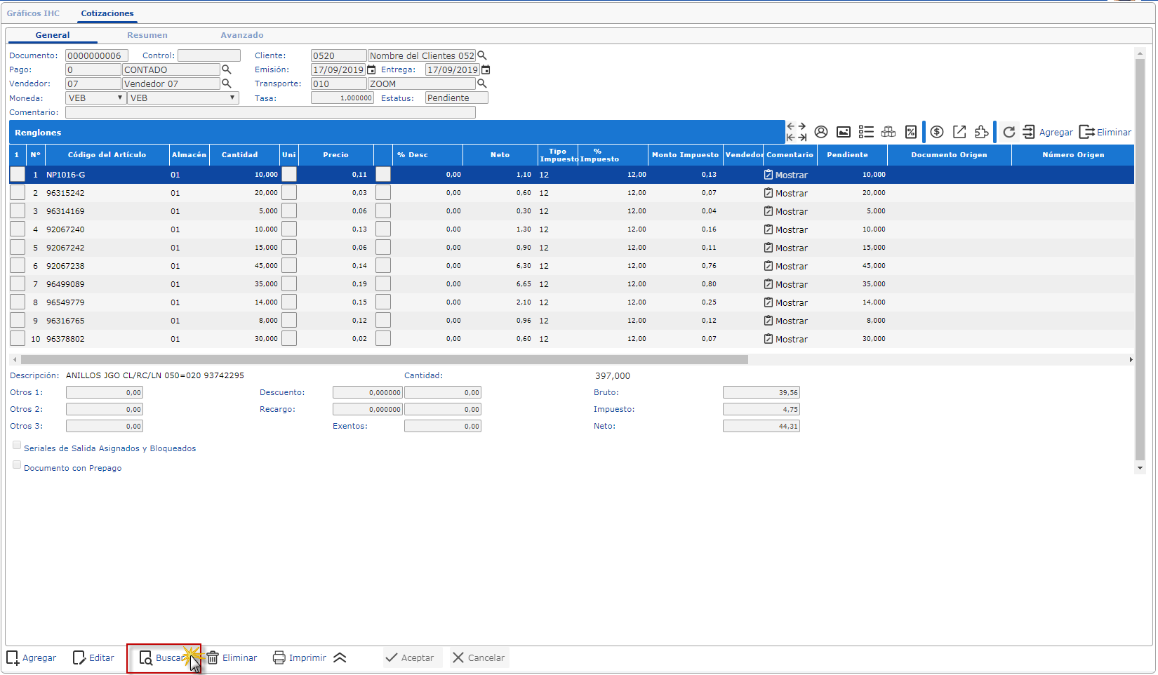 Por otro lado, para buscar una cotización debe hacer clic en el ícono