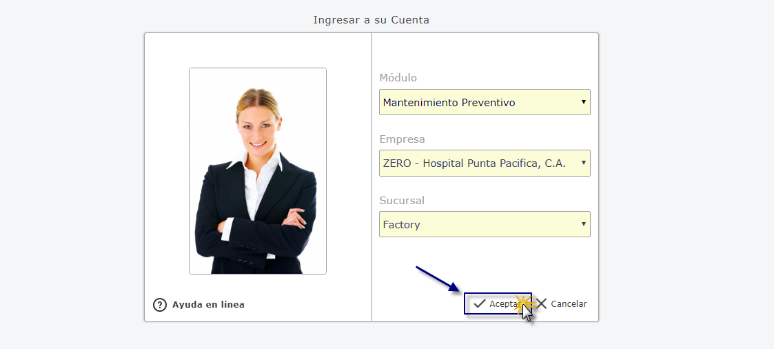 a. Al iniciar eFactory con nuestro Usuario y Contraseña, Seleccionamos el Módulo