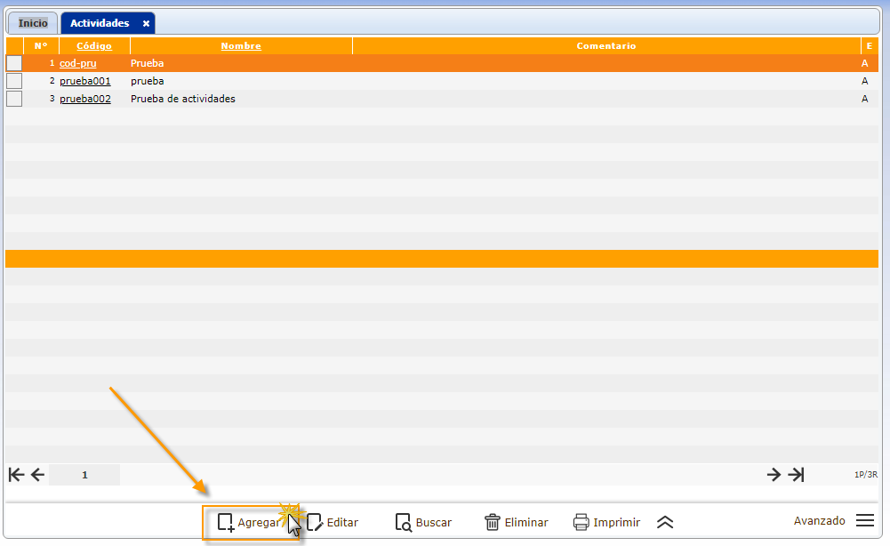 a. Para agregar una Activos, después de haber seleccionado el sub. componente Actividades