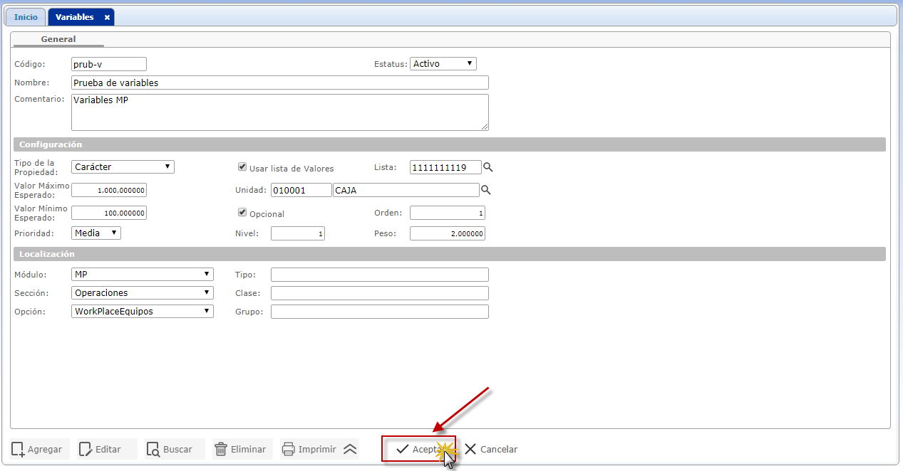 En eFactory MP las variables son espacios de almacenamiento de datos, destinados a recolectar la información resultante de las Mediciones.