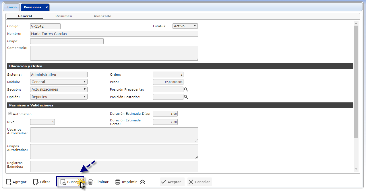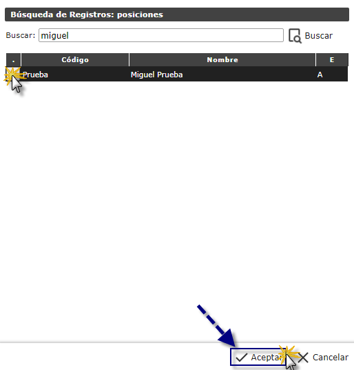 a. Para buscar posiciones, debemos seleccionar el botón