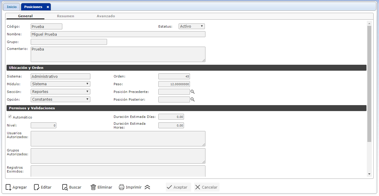 b. En el módulo MP, desplegamos el componente Actualizaciones y activamos el sub. componente Posiciones.
