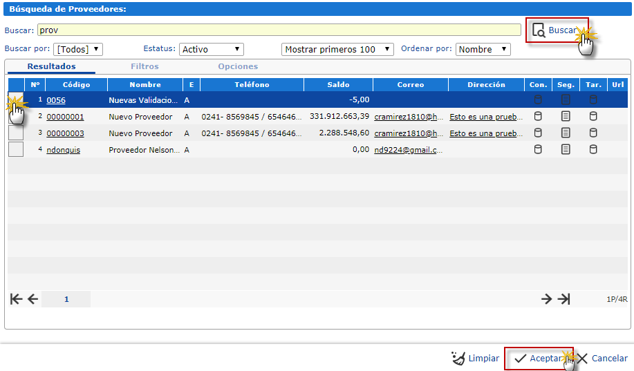 a. Para editar un proveedor después de haber seleccionado el sub. componente Proveedores, primero tenemos que buscar el Proveedor que se le realizara los cambios de