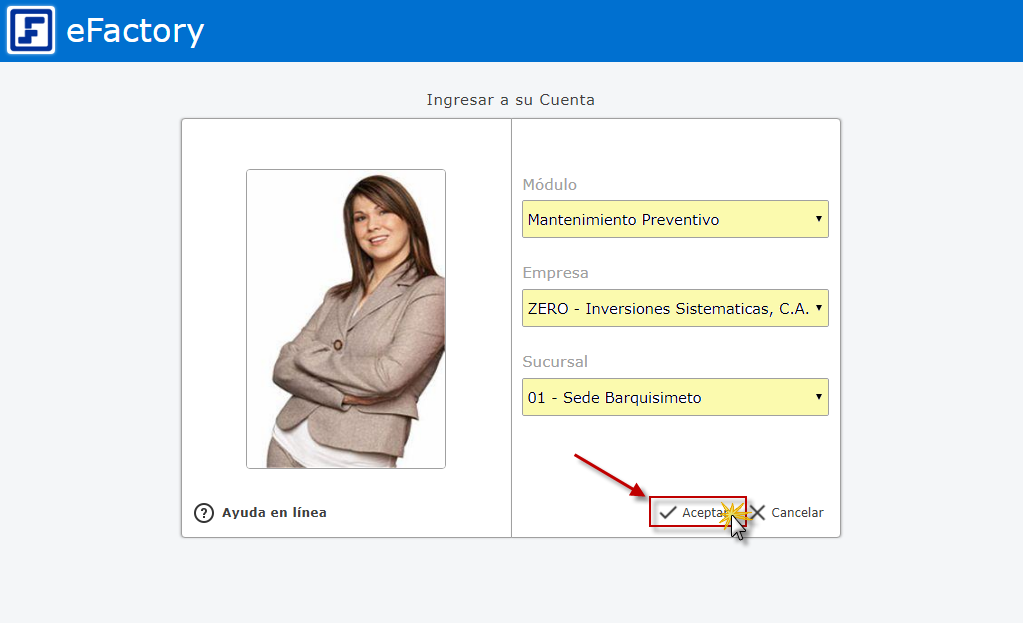 a. Al iniciar eFactory con nuestro Usuario y Contraseña, Seleccionamos el Módulo