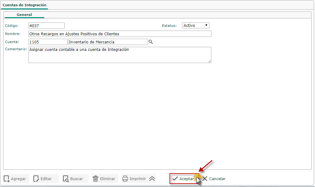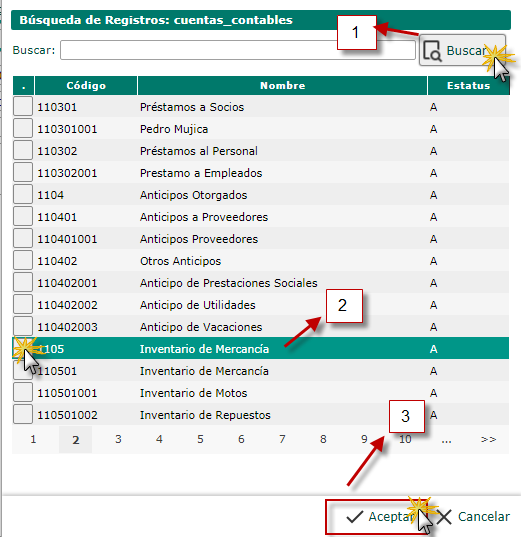 de la cuenta contable deseada y presionaremos el botón