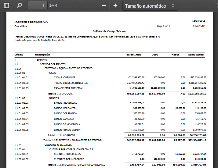 b. Revisamos en pantalla el Balance de Comprobación por Empresas, el cual refleja todos los saldos deudores y acreedores; posteriormente procedemos a guardarlo como un documento PDF o bien imprimirlo.