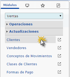 a. Primero deberemos seleccionar el módulo de Ventas, y desplegaremos la seccion "Actualizaciones" y presionaremos la opción "Clientes".