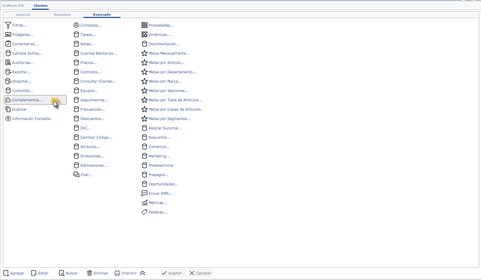 b. Luego de esto abriremos la pestaña "Avanzados" y seleccionaremos la opción "Complementos"
