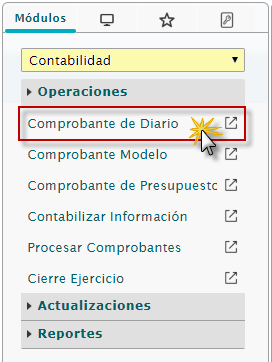b. Luego seleccionaremos el módulo Contabilidad, desplegamos el componente Operaciones y activamos el sub componente Comprobante de Diario.