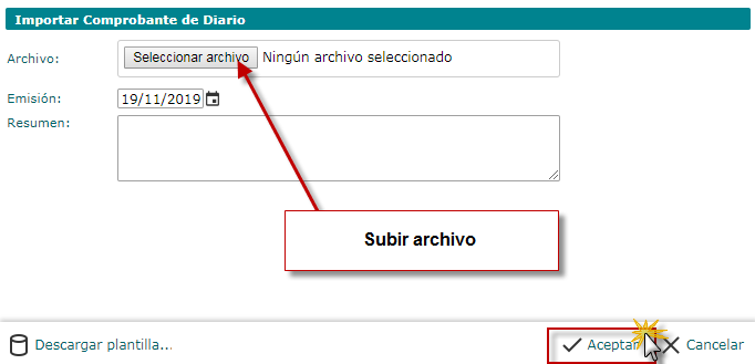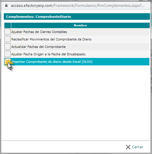 que se encuentra Importar Comprobante de Diario desde Excel (XLSX).