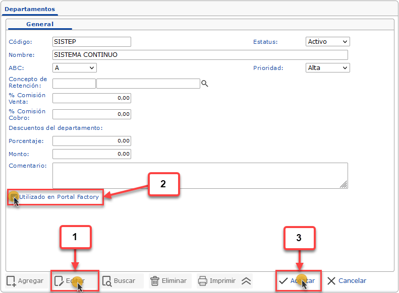 c. Al Seleccionar el Departamento que deseamos configurar, debemos hacer clic en el botón
