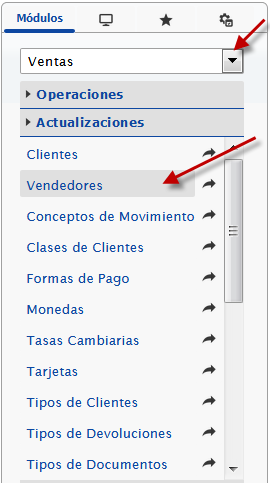 b. En el Módulo Ventas, desplegamos el componente Actualizaciones y activamos el sub componente Vendedores.